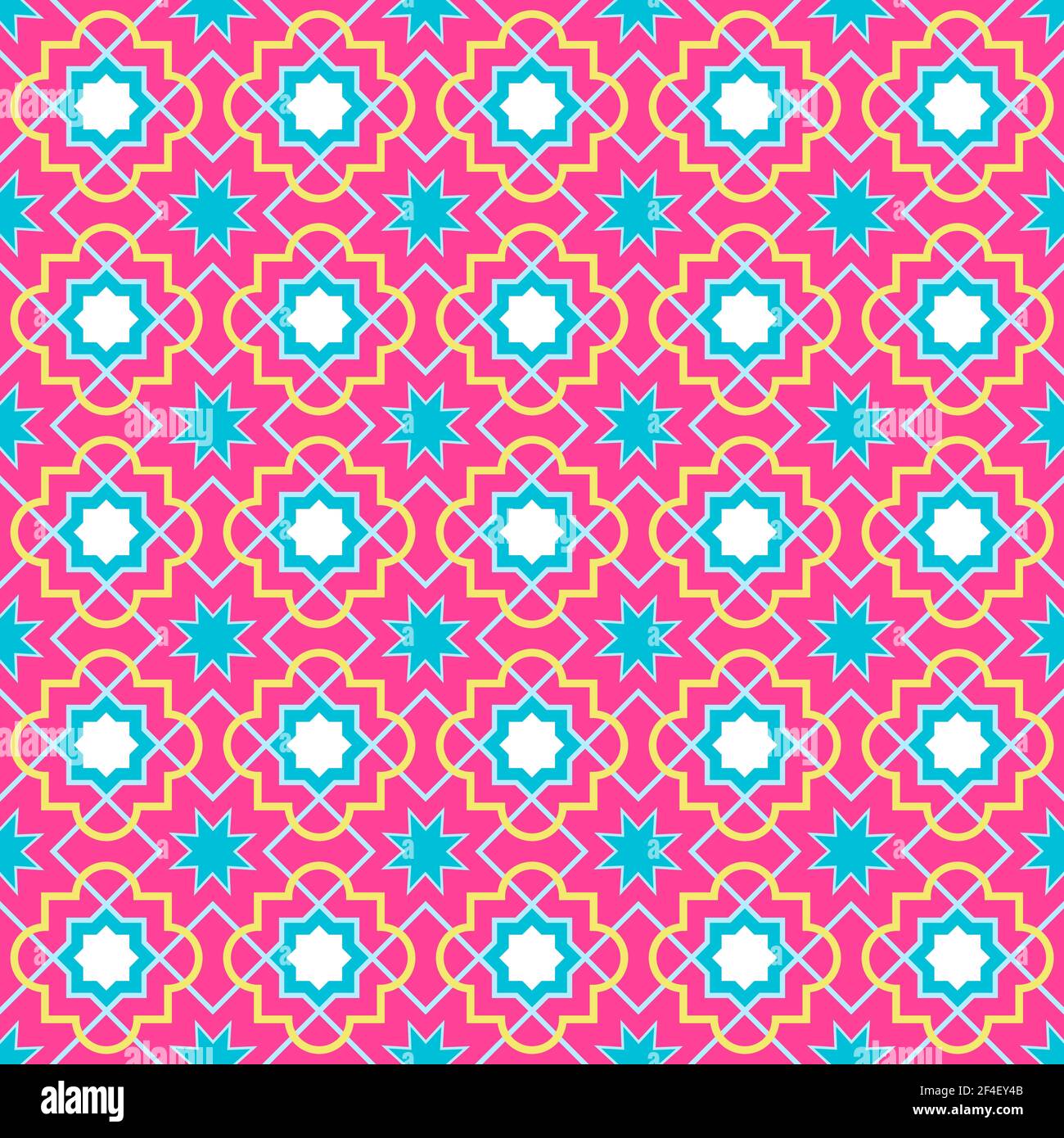 Modern Tangled Lattice Pattern Inspired By Traditional Arabic Geometry Seamless Vector Background Pattern Bright Bold Neon 1980s Colors Pink Yell Stock Vector Image Art Alamy