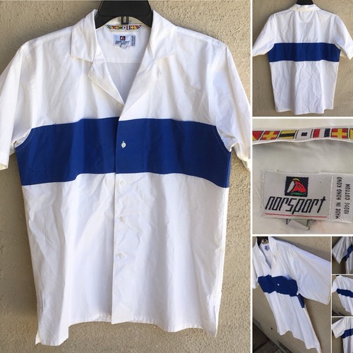 Vintage Norsport Shirt Size M 80s 1980s Nordstrom White Blue Color Block Ebay