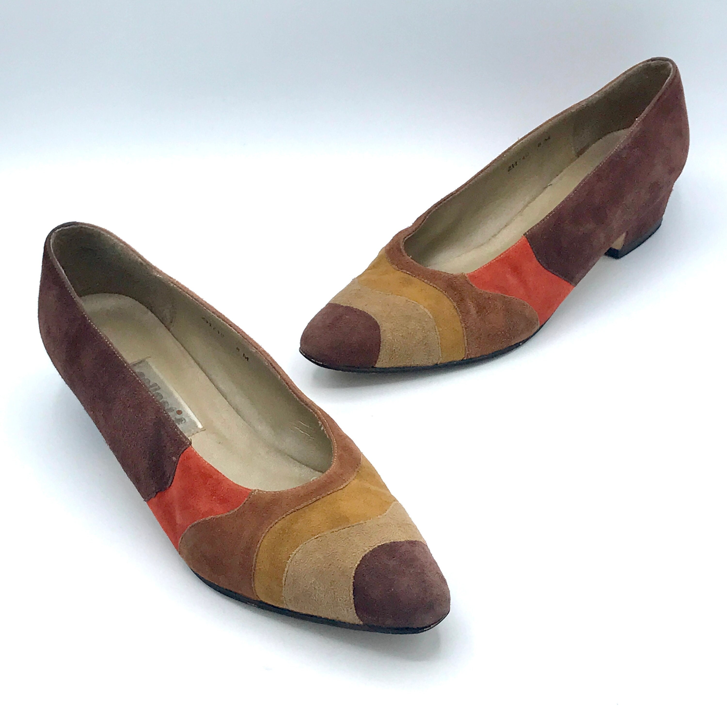 Vintage 1980s Earthtone Suede Color Block Pumps 80s Fall Etsy